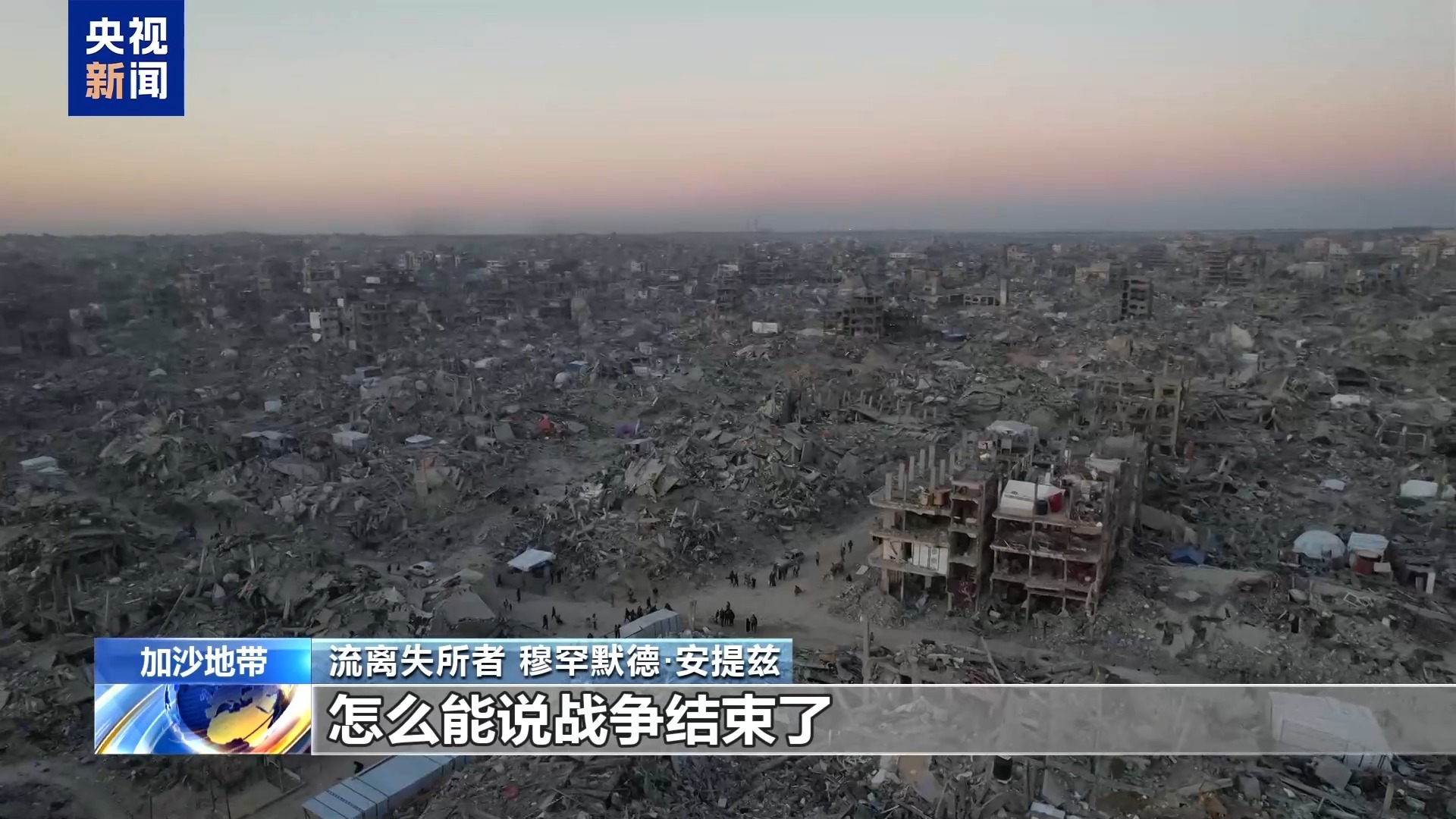 11月10日,加沙第一阶段停火协议正式生效一个月。然而,对于许多加沙人来说,今天的生活和一个月前一样——为一日三餐发愁、奔跑躲避袭击、为挽救生命而奋斗是他们生活的主旋律。在脆弱的停火协议下,美国和以色列之间的冲突逐渐升级,双方都开始谋划新的行动。安全不易,回国不易。巴以冲突爆发后,穆罕默德·安蒂兹的住宅第三次遭到轰炸。从此,一家人就搬家了,甚至靠吃野菜和饲料为生。这样的生活持续了两年,直到加沙停火协议第一阶段签署前的第五天,安蒂兹6岁的女儿艾琳被以色列子弹击中胸部,子弹穿透了她的背部,瘫痪在床。在两年的冲突期间,生存本身非常困难。即使所谓的停火到来,让女儿回来或回到以前的家园对加沙人民来说仍然是一个遥远的梦想。流离失所者穆罕默德·安蒂兹:他们说战争已经结束。会怎样呢?我家彻底炸了,怎么考虑?当边界没有完全开放、没有足够的食物或援助时,我们怎么能说战争已经结束呢?我不觉得一切已经结束,因为我们仍然生活在战争的阴影中。和平还能持续多久?