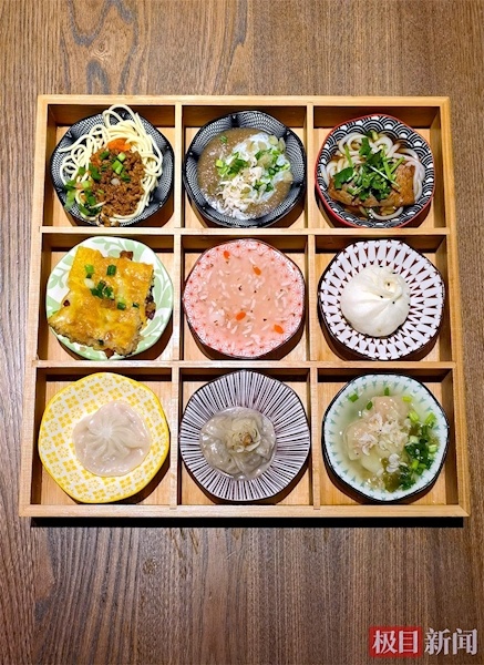 “对于那些难以选择的人来说是个好消息!”来自吉林的游客王女士举起手机,对着九方格子拍了几张照片。 “我曾经为先吃什么而烦恼,现在我不用再担心了。”格子上的每一份小吃都是适量,一口吃下去,不用担心浪费,还能品味到武汉的精髓。九个方格的设计巧妙地解决了游客“大眼睛、小肚子”的问题,也让“碳水天堂”武汉的浓郁风味得以浓缩盛开在精致的木盘上,堪称中国版的“好米”。