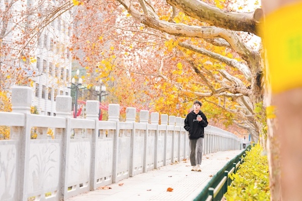初冬时节,车城西路两旁的梧桐树换上金色、赭色的“衣服”,树叶在阳光的照射下层层叠叠,形成一幅动人的景象,十分好看。微风吹过,金色的树叶扭曲着。行人走过其中,仿佛走进了绚丽的仙境。记者 刘成辰 摄