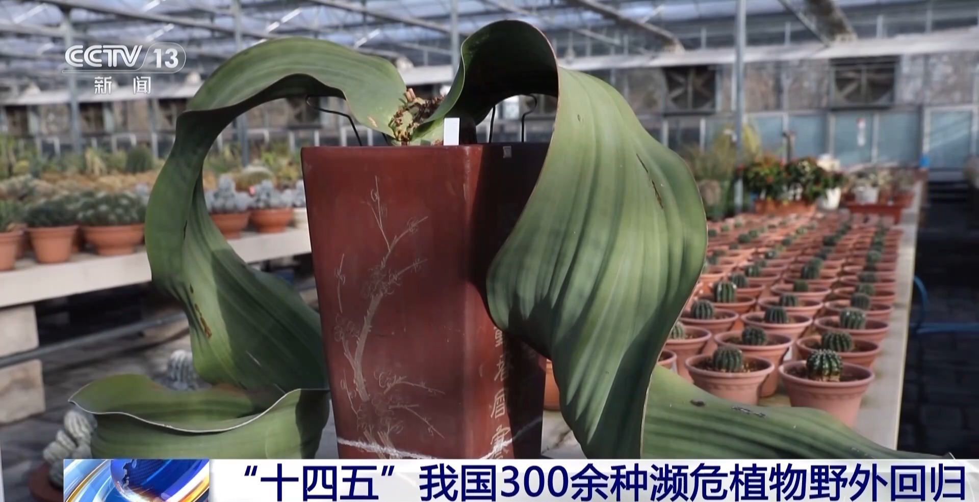 在国家植物园,记者看到了来自西非纳米布沙漠的世界珍稀千岁兰植物。经过系统培育,一亿年前存在的沙漠“活化石”如今在北京“繁衍生息”。今年,我国完成了第一张千岁兰全轮转图的采集。